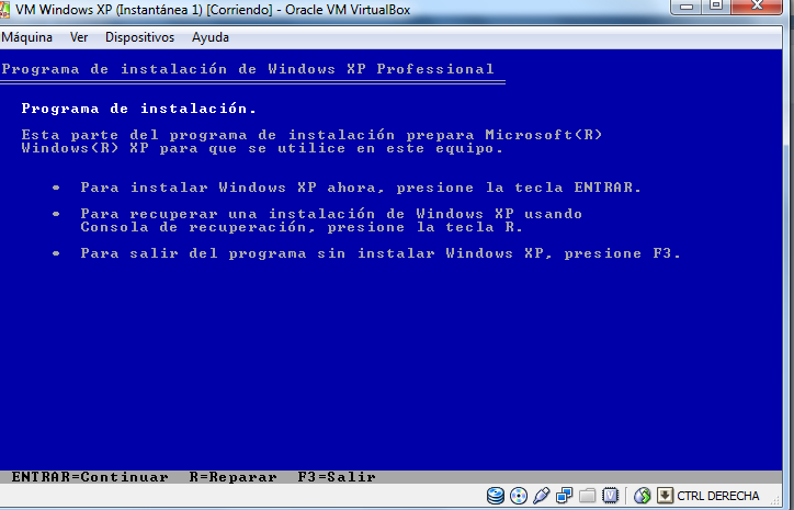instalación del XP básicamente consiste en irle dando a Siguiente.